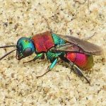 Despite the drought, Ainsdale’s Falklands Way dunes still had some golden stands of Common Fleabane, a magnet for several kinds of hoverfly, including the impressive Wasp Plumehorn and Golden-tailed Leafwalker. Solitary bees were represented by the brightly-patterned Black-thighed Epeolus, a ‘cuckoo’ that lays its eggs in the nests of Plasterer Bees. Red-and-black Six-spot Burnet moths seemed to be unaffected by the dry conditions, being about as numerous as usual but most butterflies disappeared, having had a pretty good season up to this point. By now, the Devil’s Hole was quiet but I did manage to find a mating pair of the Four-banded Beegrabber during one of my regular visits to record the water-table and list the plants for a study that began in 2004. Having added a few new ones during August, the grand total of higher plants for this amazing site is now 186!
