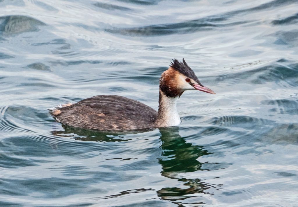 One of December’s highlights, an immature male Smew, spent most of the month on Southport Marine Lake. This duck breeds in the vast boreal conifer forests, from Scandinavia to Siberia. I caught up with it on two occasions, the second when it was unnecessarily disturbed by a photographer. When I was a student in London in the early 1960s, I used to travel to the Welsh Harp to see impressive flocks of wintering Smew. This reservoir boasted a record count of 144 in 1956. However, due to milder winters in Europe, in recent years the duck has become increasingly scarce and is now Red-listed in Britain. Southport Marine Lake also had a female Goosander, two Red-breasted Mergansers, up to four Great Crested Grebes, six Little Grebes and several Goldeneye; quite a duck/grebe-fest!